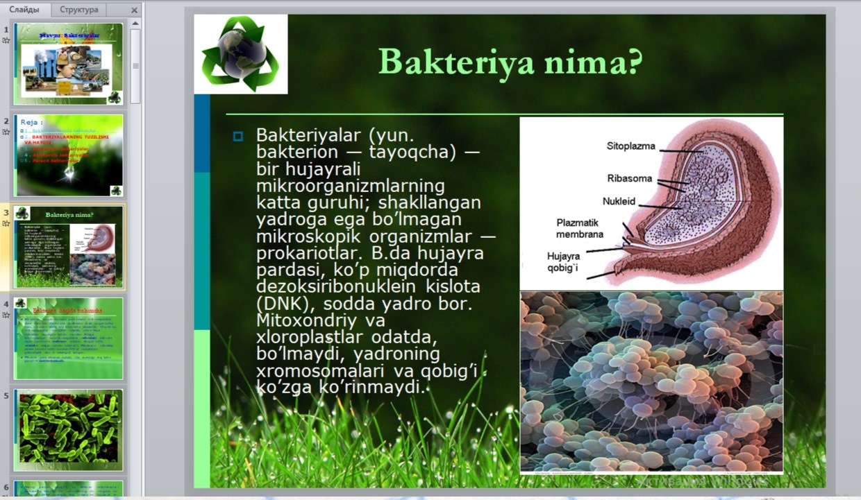 2 . BAKTERIYALARNING TUZILISHI VA HAYOTI.